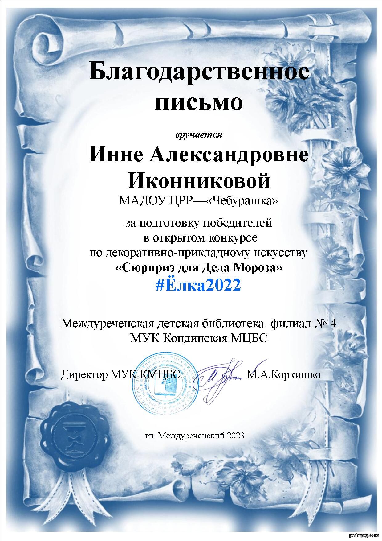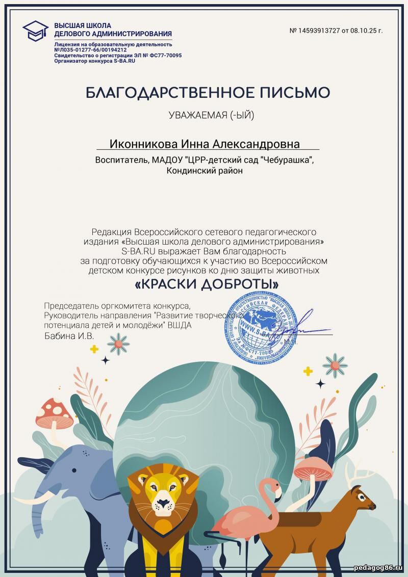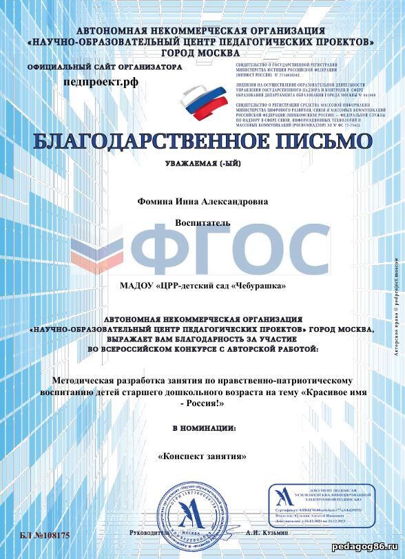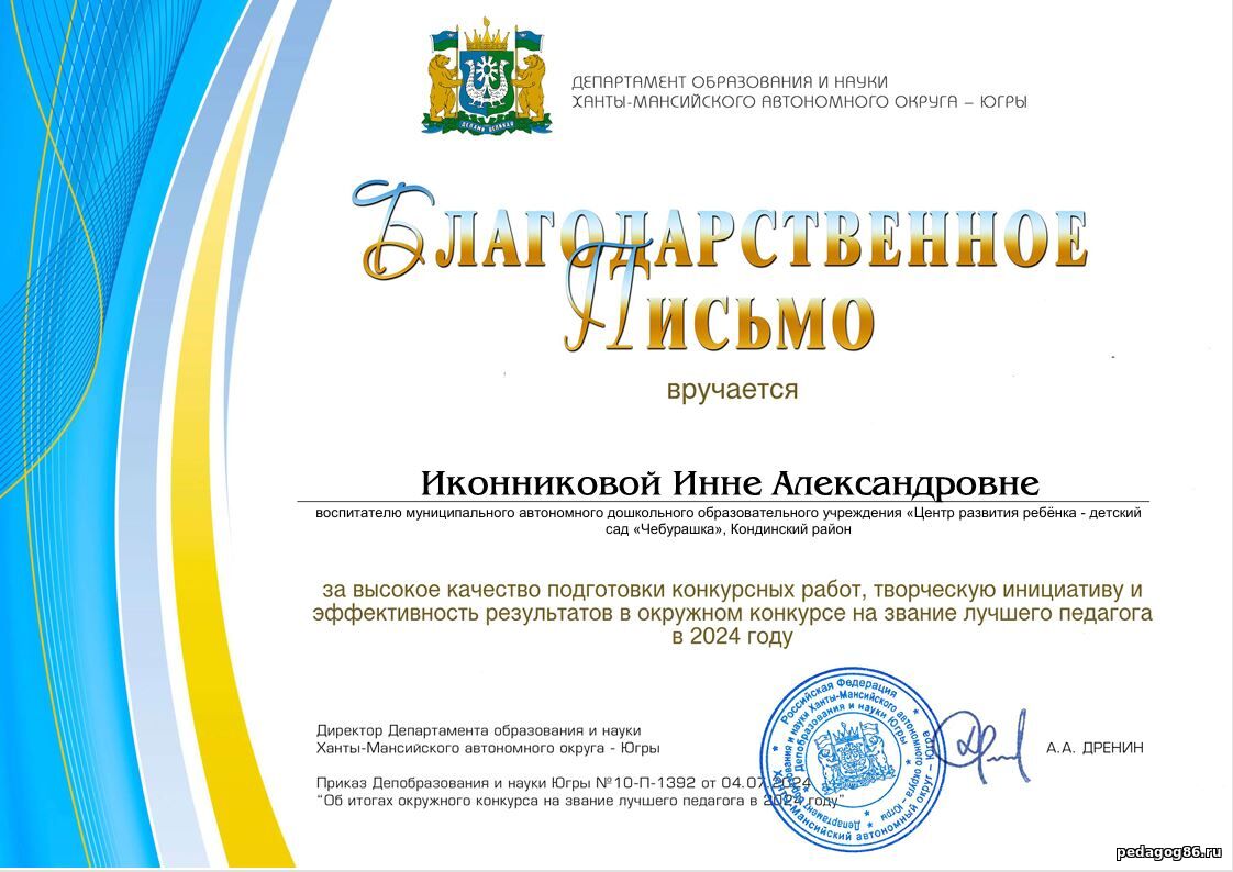 ![]() | Иконникова Инна Александровна Воспитатель, учитель - логопед МАДОУ "ЦРР- детский сад "Чебурашка" ![]() ХМАО-Югра. гп. Междуреченский | |