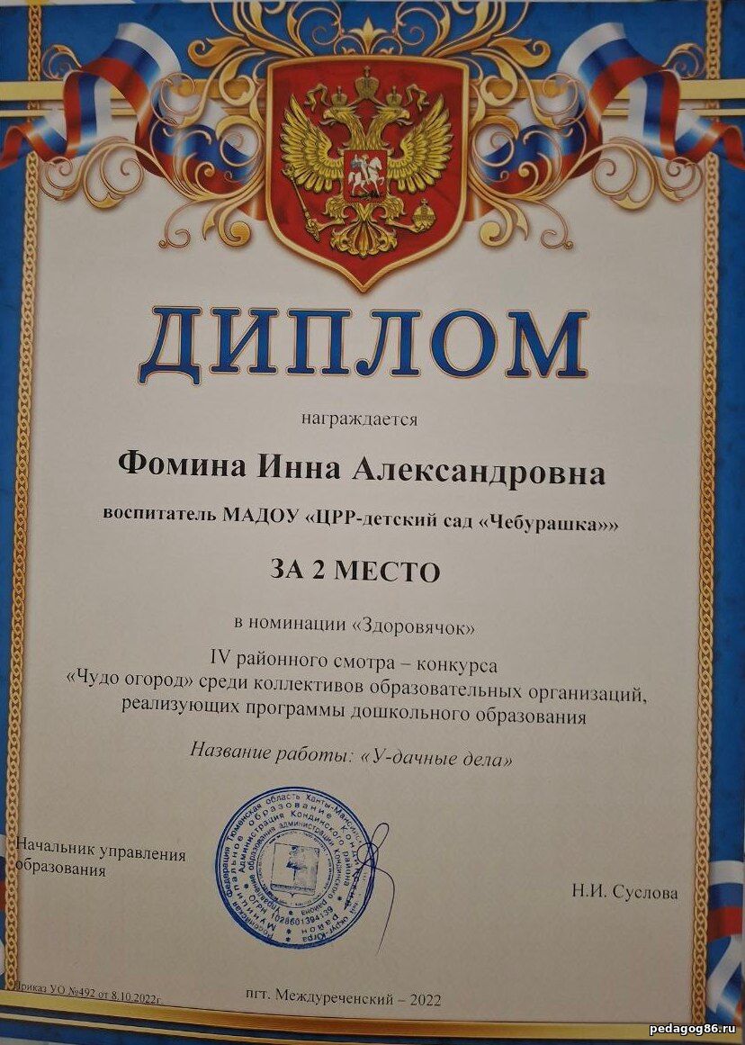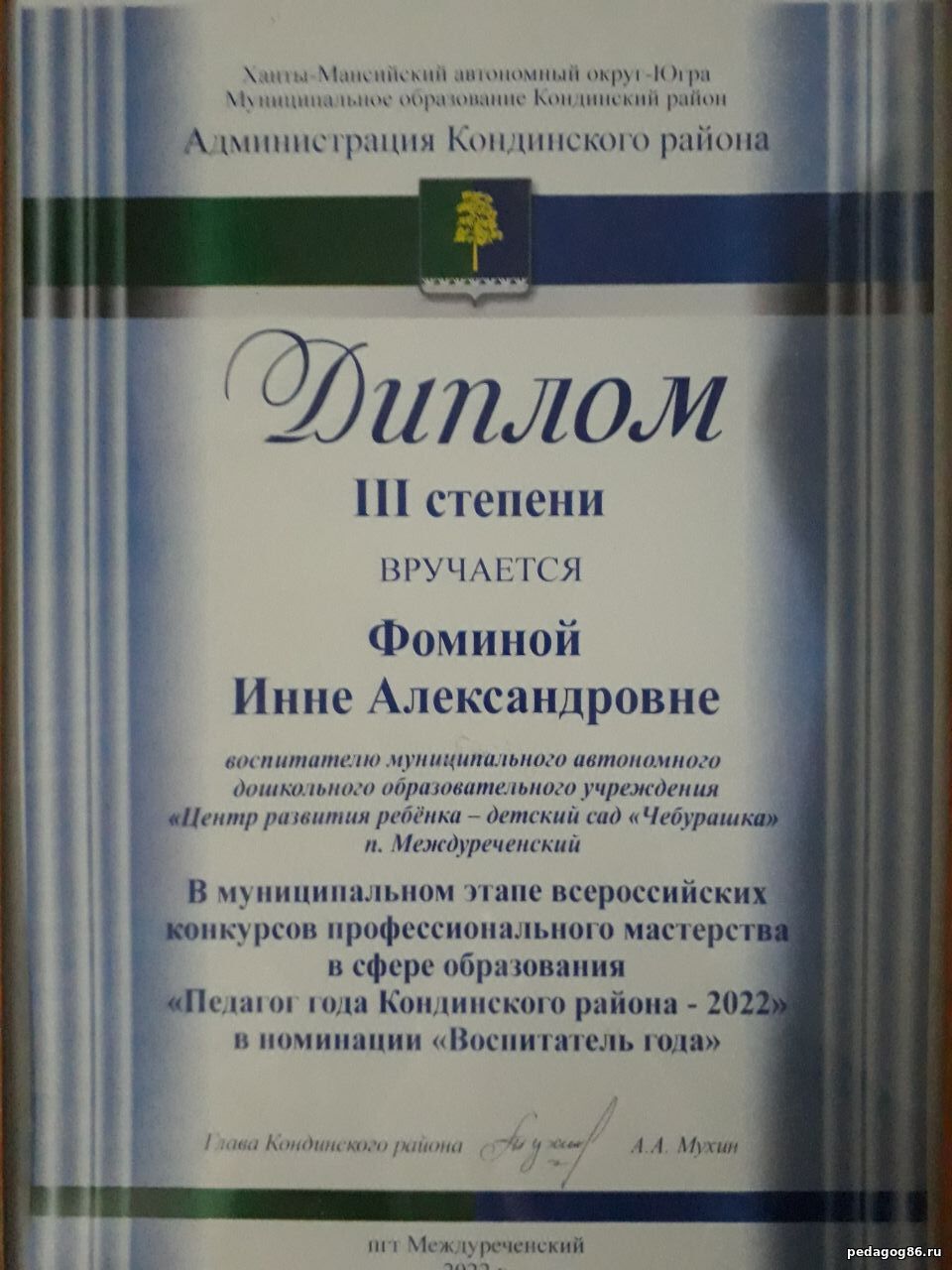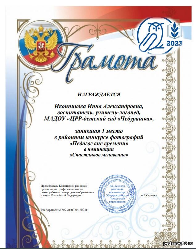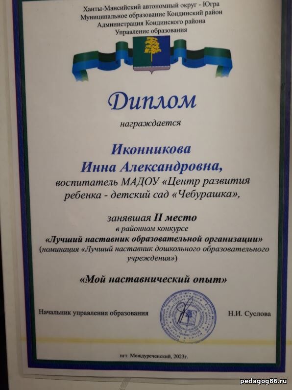 ![]() | Иконникова Инна Александровна Воспитатель, учитель - логопед МАДОУ "ЦРР- детский сад "Чебурашка" ![]() ХМАО-Югра. гп. Междуреченский | |