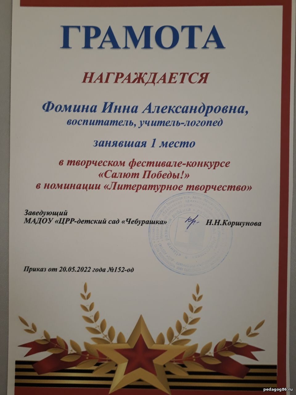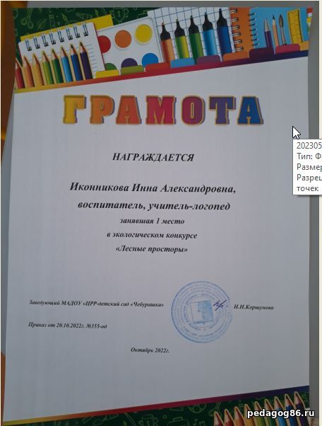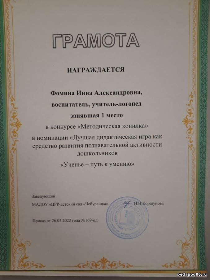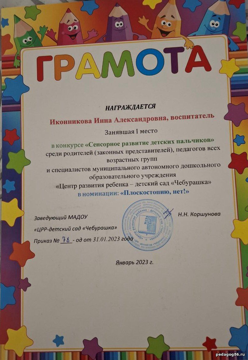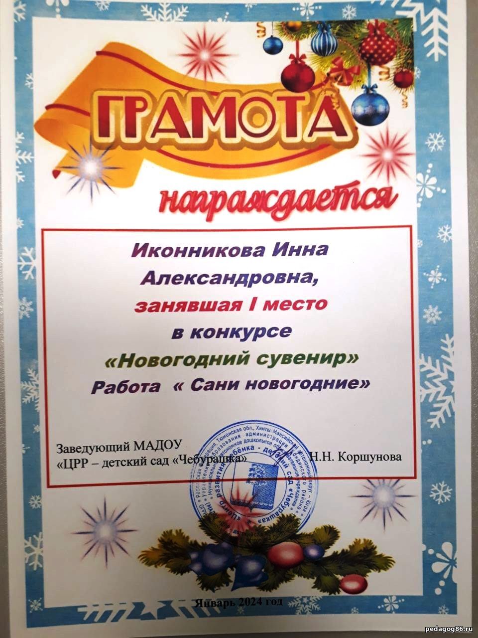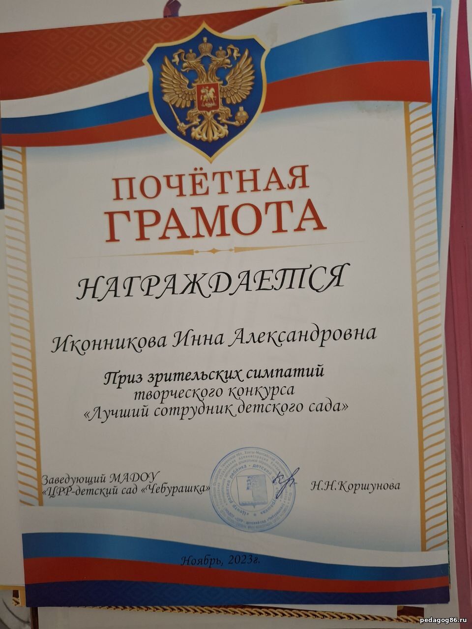 ![]() | Иконникова Инна Александровна Воспитатель, учитель - логопед МАДОУ "ЦРР- детский сад "Чебурашка" ![]() ХМАО-Югра. гп. Междуреченский | |