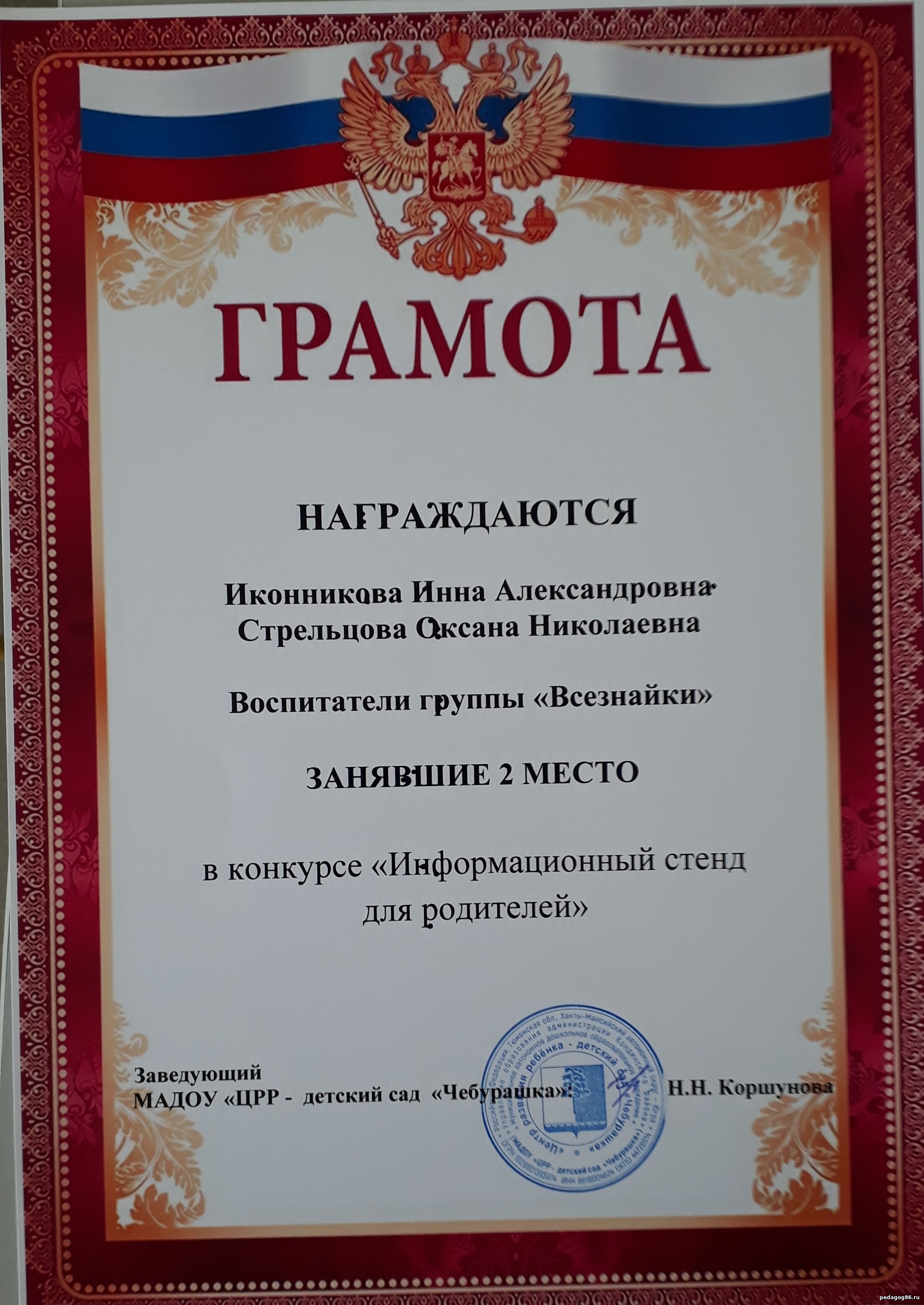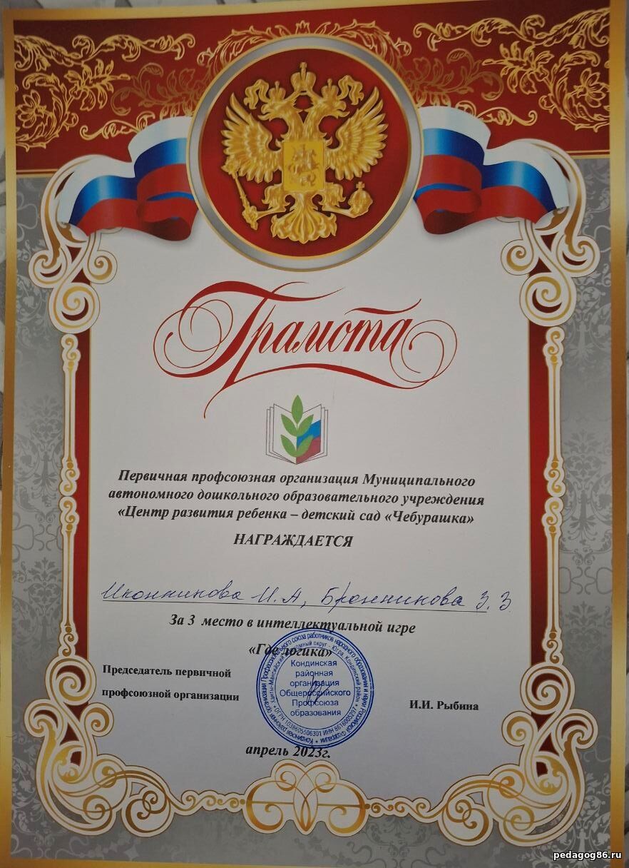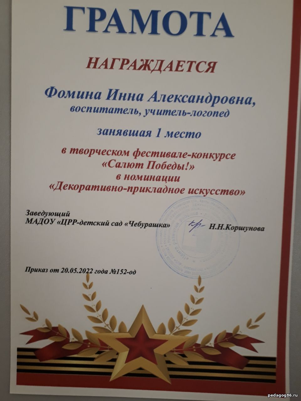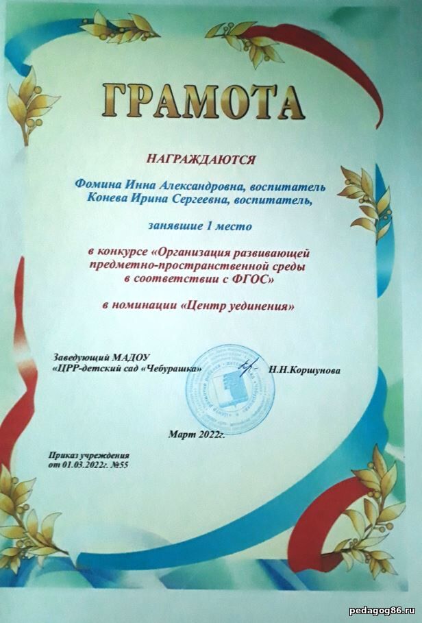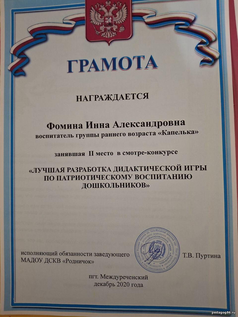 ![]() | Иконникова Инна Александровна Воспитатель, учитель - логопед МАДОУ "ЦРР- детский сад "Чебурашка" ![]() ХМАО-Югра. гп. Междуреченский | |